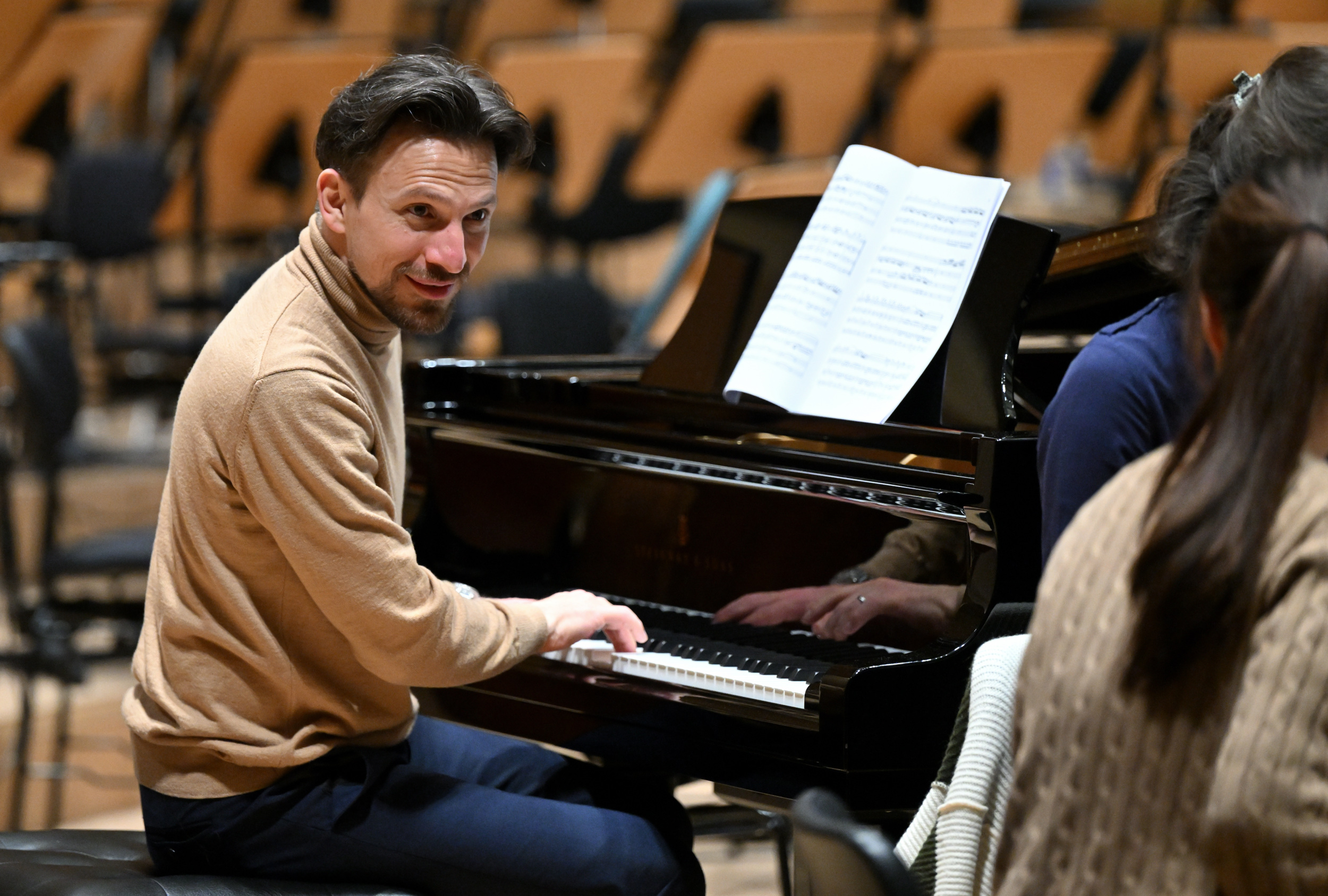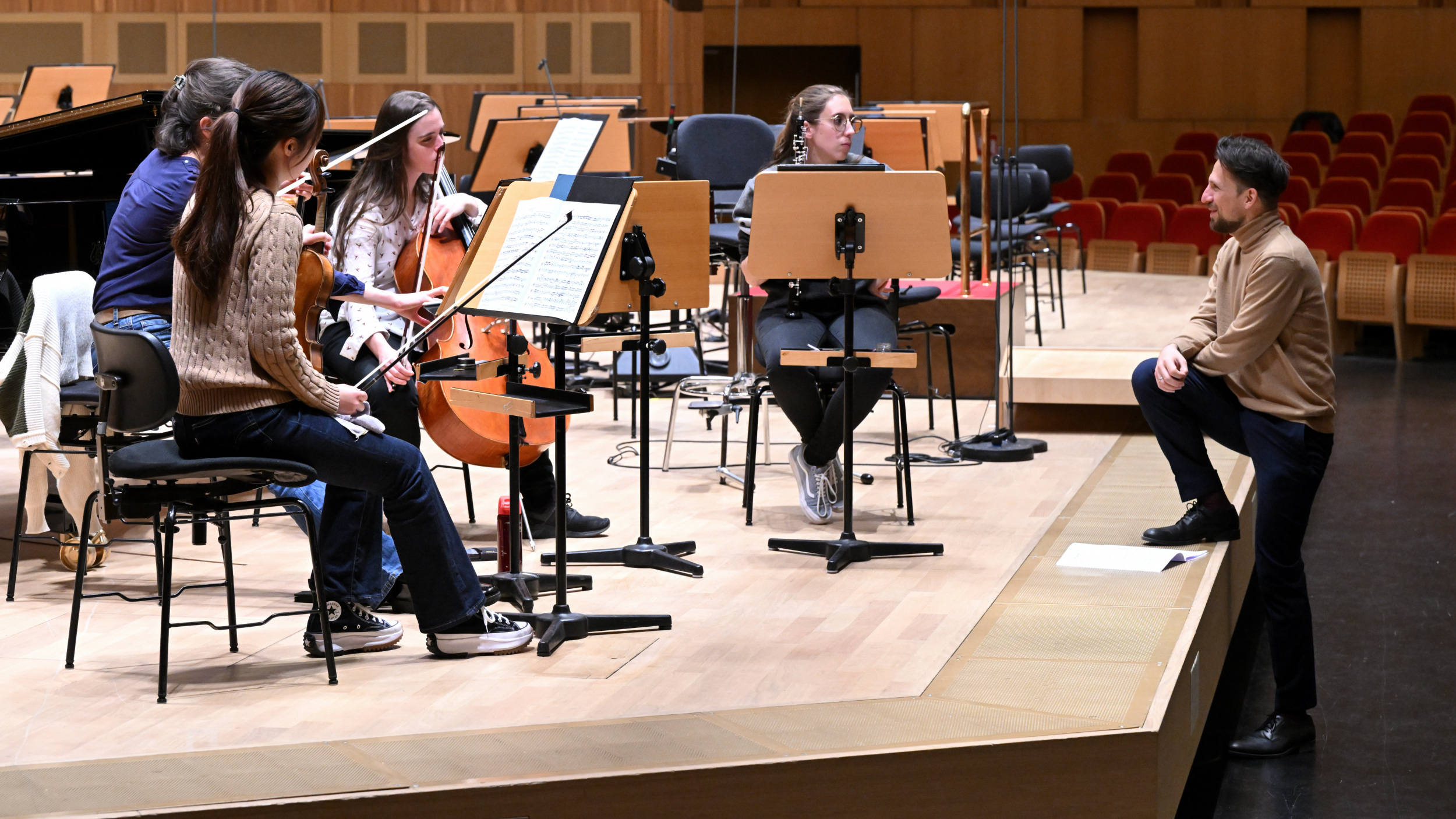 Sehr kurzfristig erklärte sich Cornelius Meister, als Gastdirigent der NDR Radiophilharmonie gerade die 9. Sinfonie von Anton Bruckner vorbereitend, bereit, die erkrankte Julia Fischer in einem Workshop der Joseph Joachim Akademie am 07.05. zu vertreten. Das Oboen-Quartett von Wolfgang Amadeus Mozart und das Klavierquintett von Ralph Vaughan Williams waren von den Akademistinnen zusammen mit dem Pianisten Jihwan Hong ausgesucht worden. Sehr kurzweilig, historisch informiert und teilweise am Klavier erläuternd, nahm Cornelius Meister auch in vergleichsweise knapper Zeit zielführend Einfluss auf die Interpretation der bereits sehr gut vorbereiteten jungen Musikerinnen und Musiker. Während des finalen Vortrags wuchs die Vorfreude auf das Akademie-Konzert in unserer Kammermusikreihe am 25.05.2025, das vom NDR aufgenommen und zu einem späteren Zeitpunkt gesendet wird.